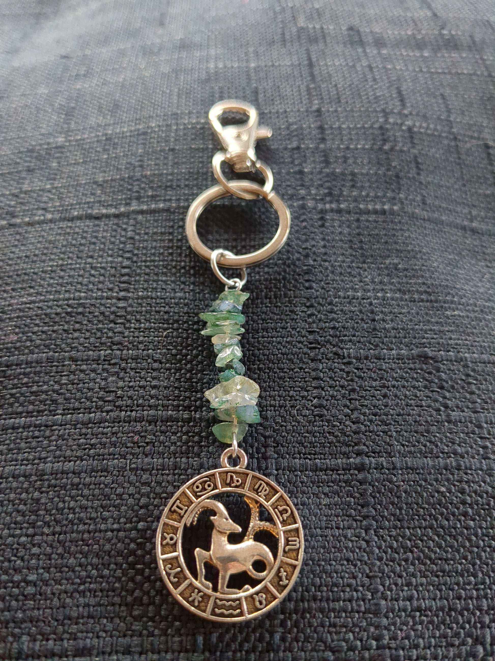 Capricorn Zodiac Intention Keychain β Moss Agate