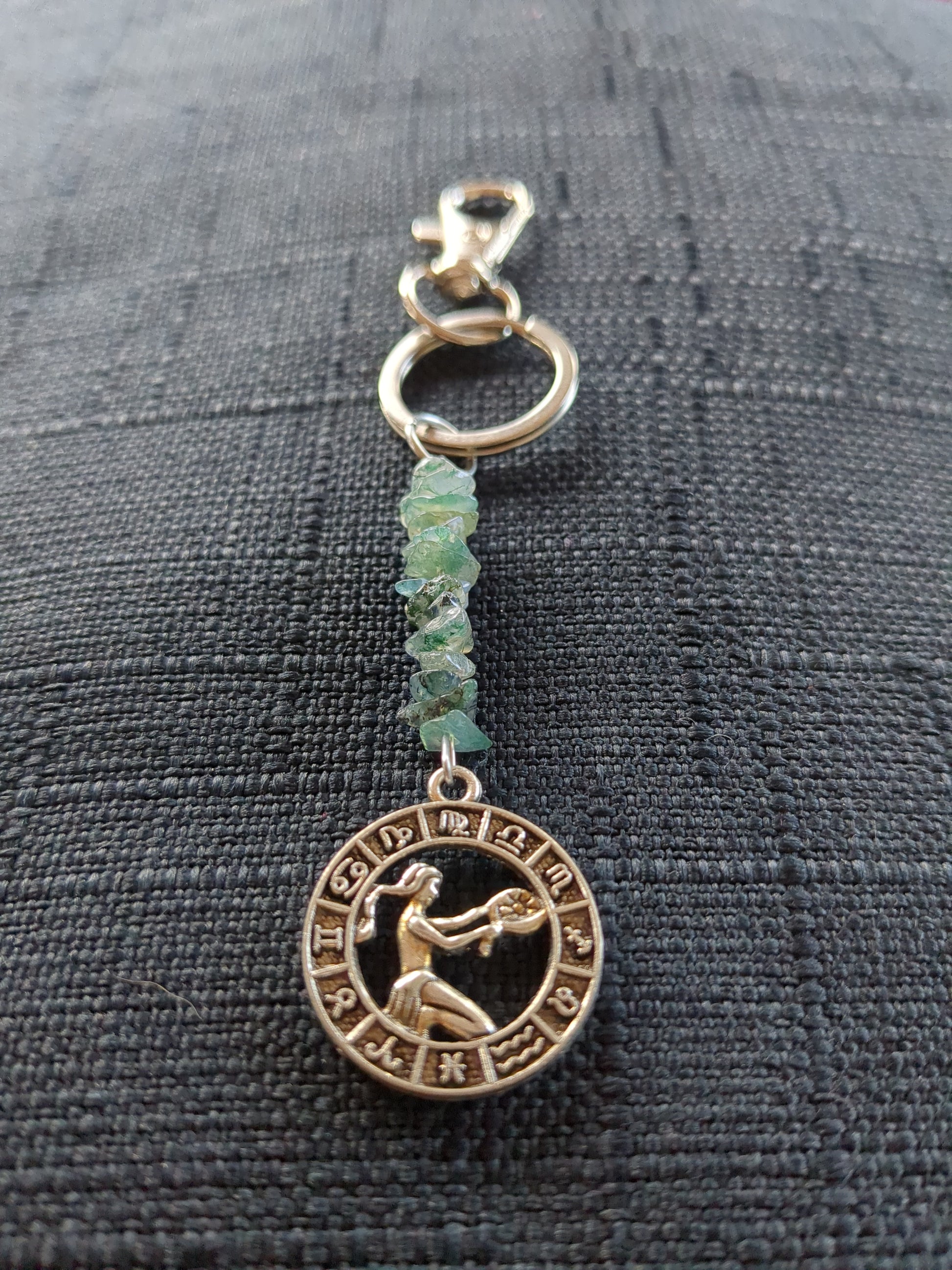 Virgo Zodiac Intention Keychain – Moss Agate